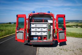 Der ELW 1 bildet die mobile Einsatzzentrale bei Großschadenslagen. Bei fast allen kleineren Einsätzen stellt er die Verbindung zur Leitstelle in Fulda sicher und ist das Führungsfahrzeug, welches das Einsatzgeschehen koordiniert.